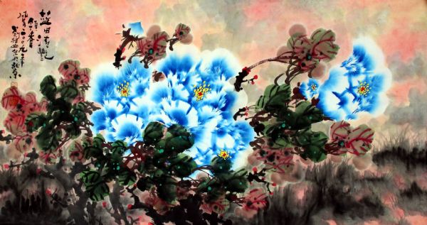我要用色|彩、用笔墨去痛痛快快的无拘无束、随心所欲、不受任何圈圈框框束缚去表现它的由表及里之美。中央美术学院王定理老师的中国国画传统色教学,他的重彩画实践和理论成果深深的影响着我,我要用蘸满淋漓丰色的画笔纵情地描绘牡丹的领袖气度和王者风范。这就进入了我的笔墨实践和发展阶段,国内外的大型的画展入选获奖作品均是我的牡丹梅花作品。
